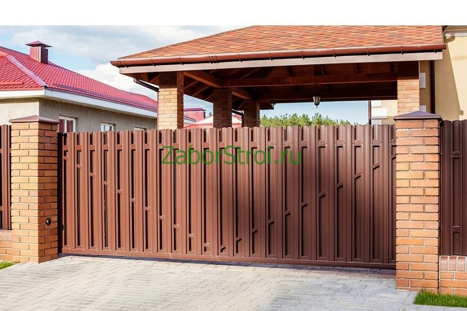 Ворота откатные автоматические с приводом из евроштакетника на бетонном основании