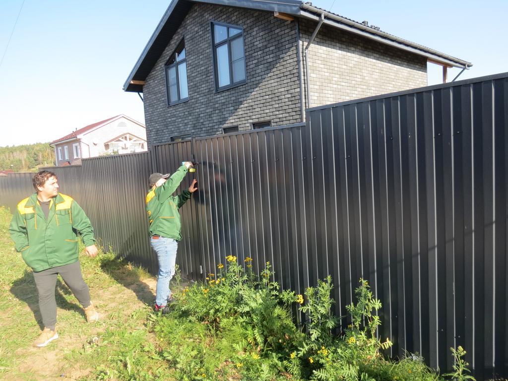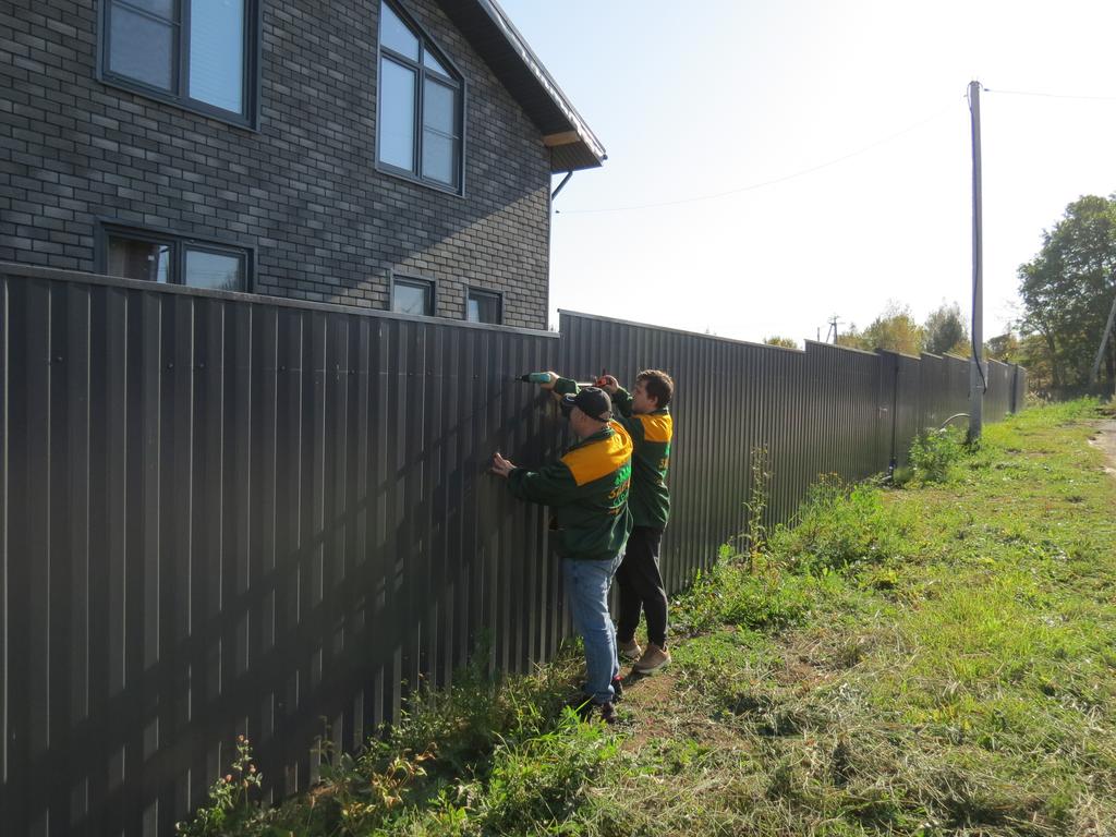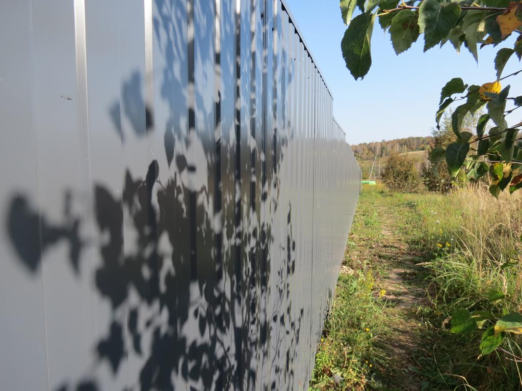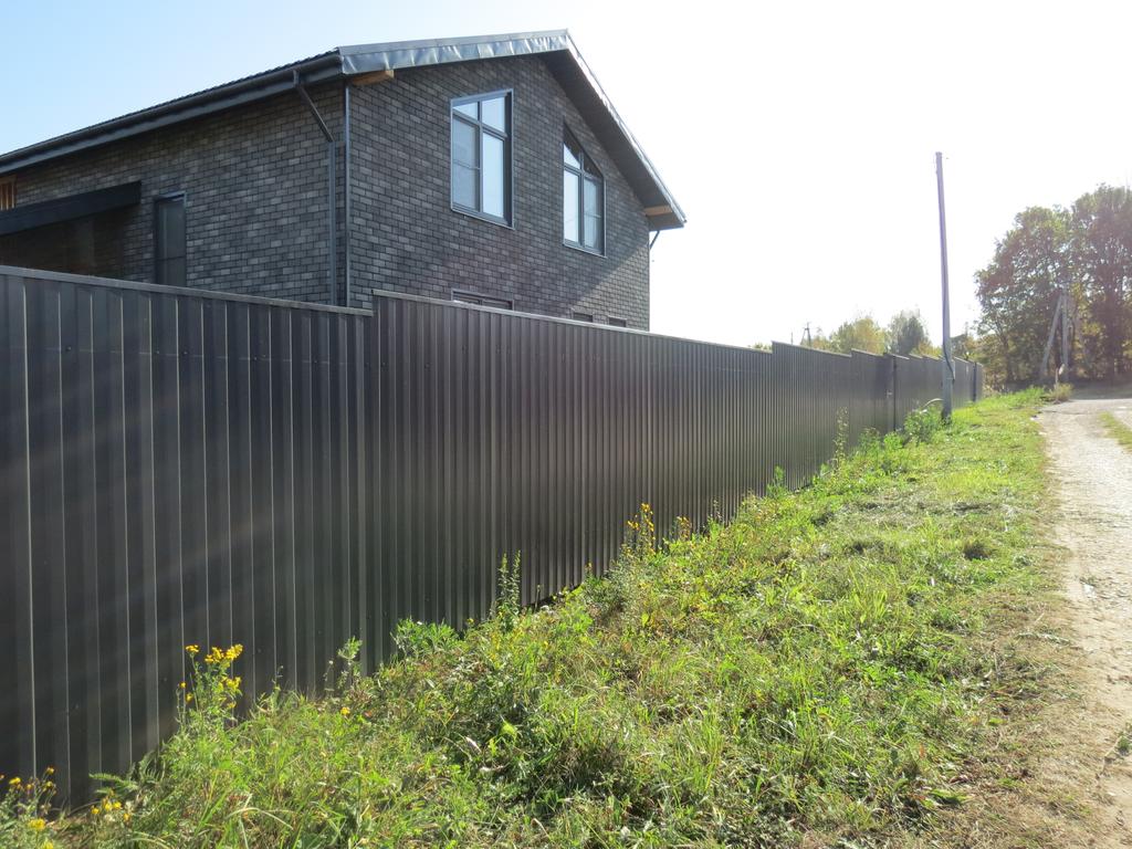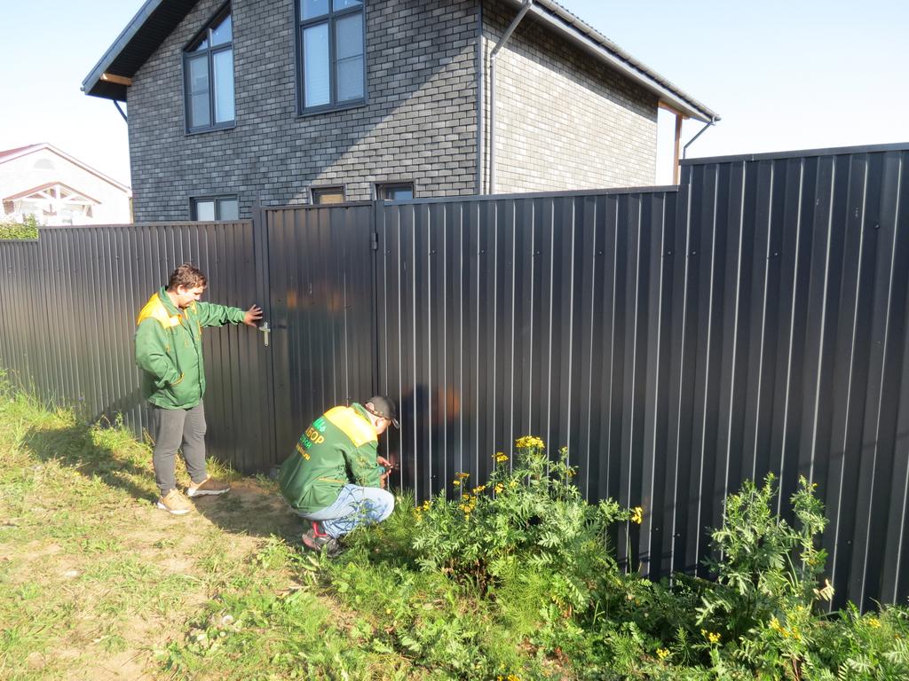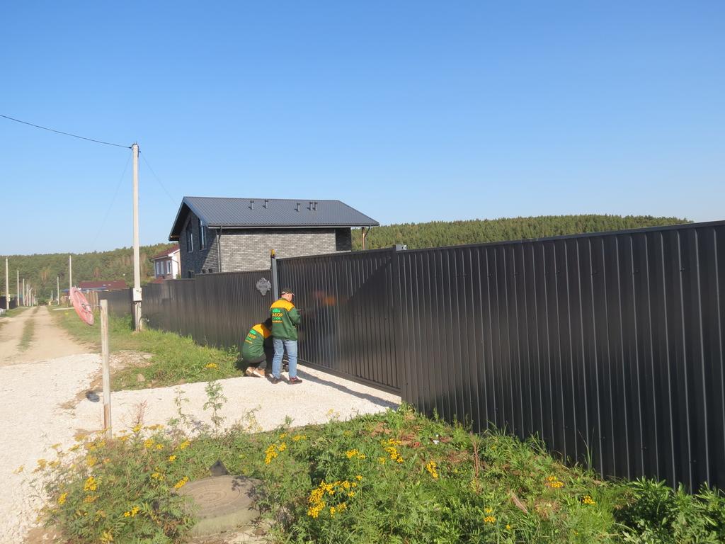 Откатные ворота из профнастила на винтовых сваях (цена на бетонном основании +20000р)