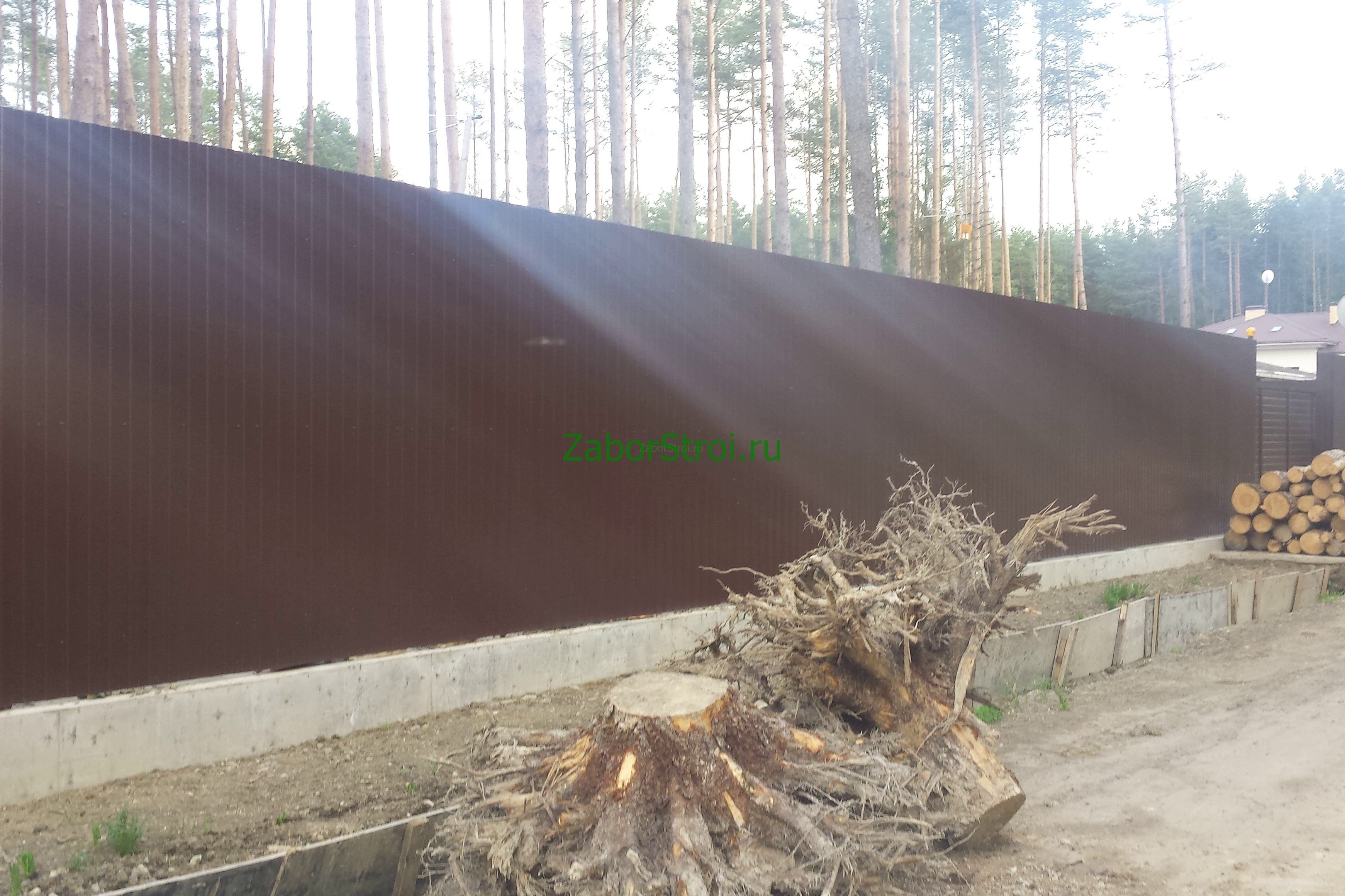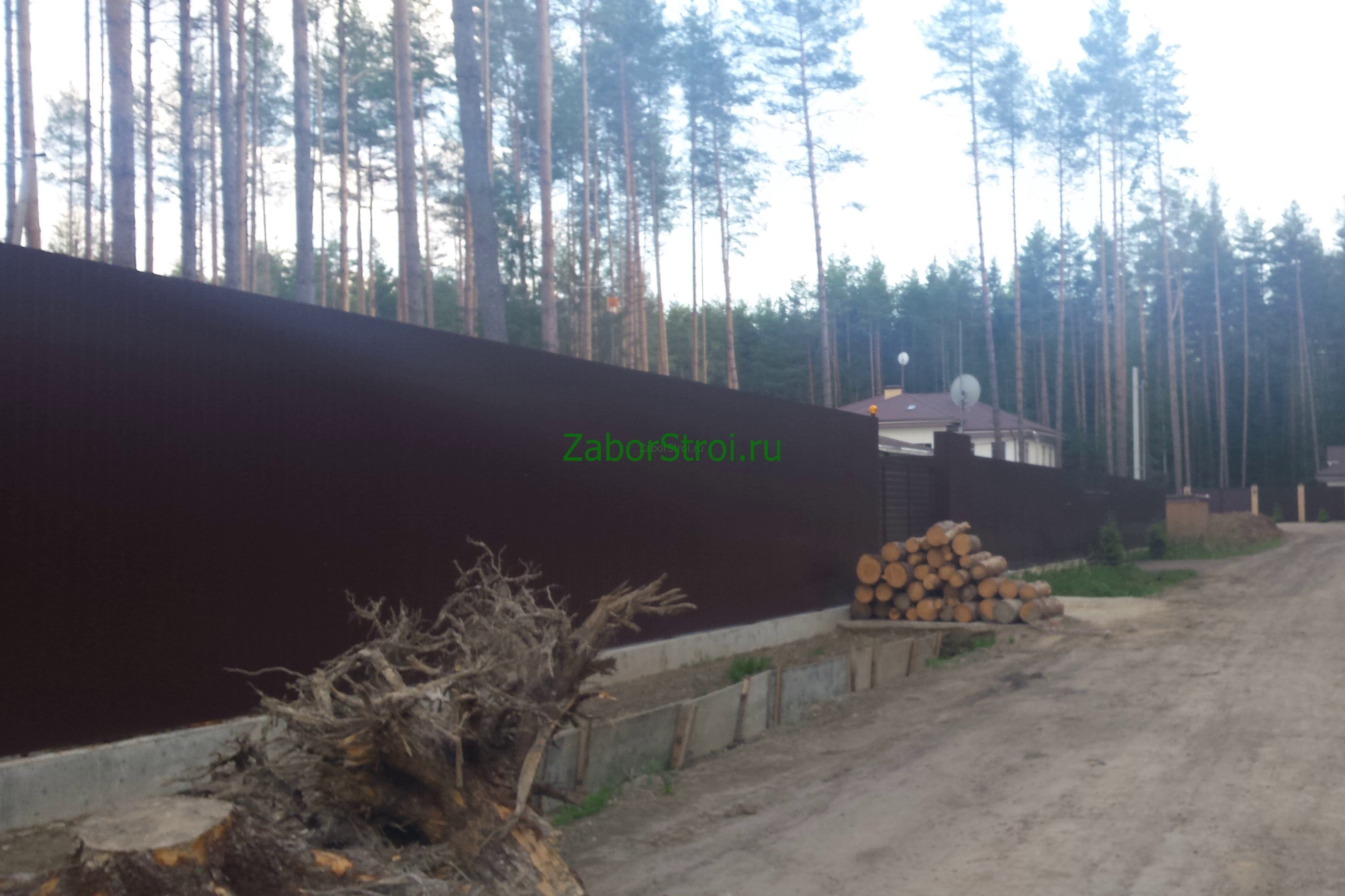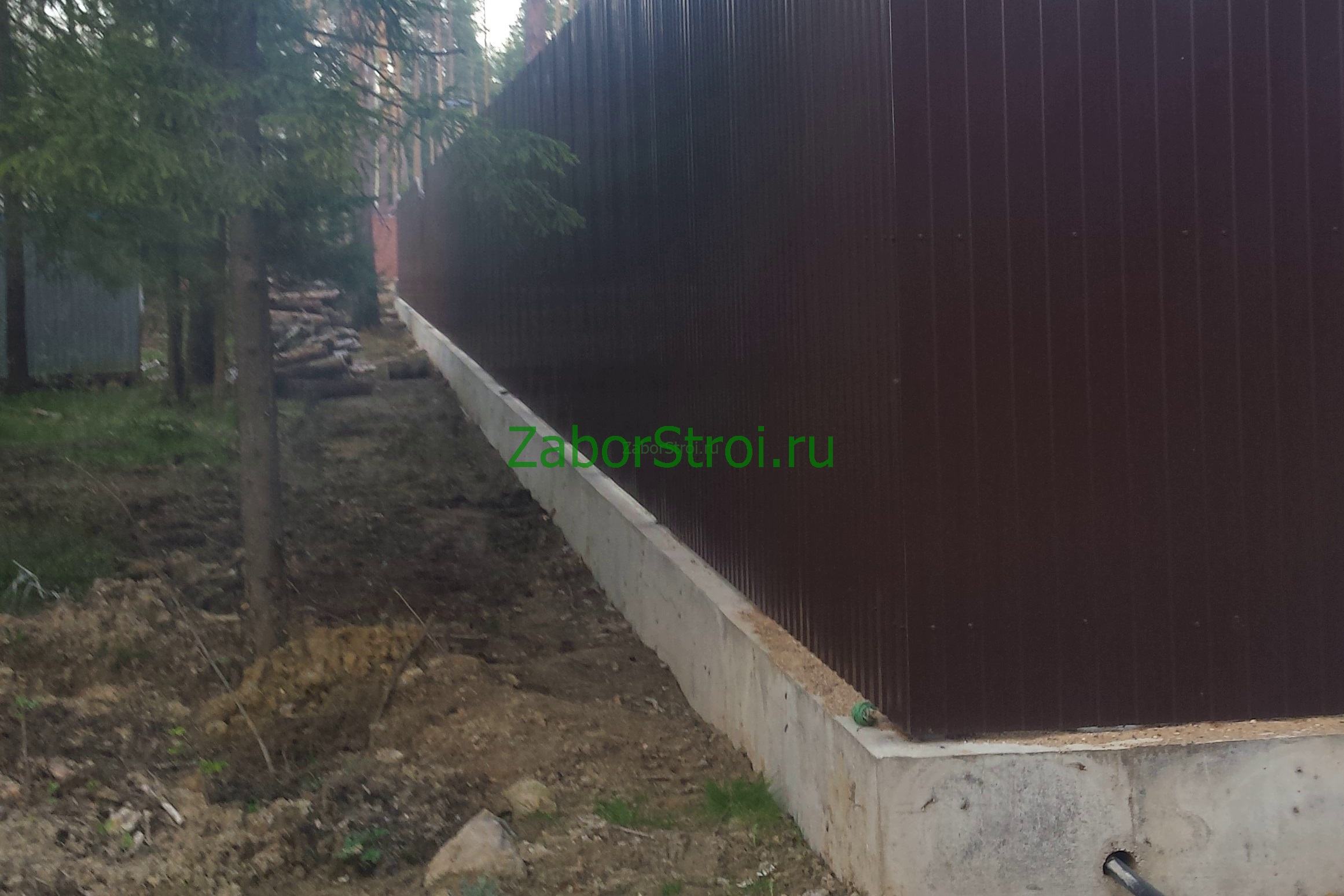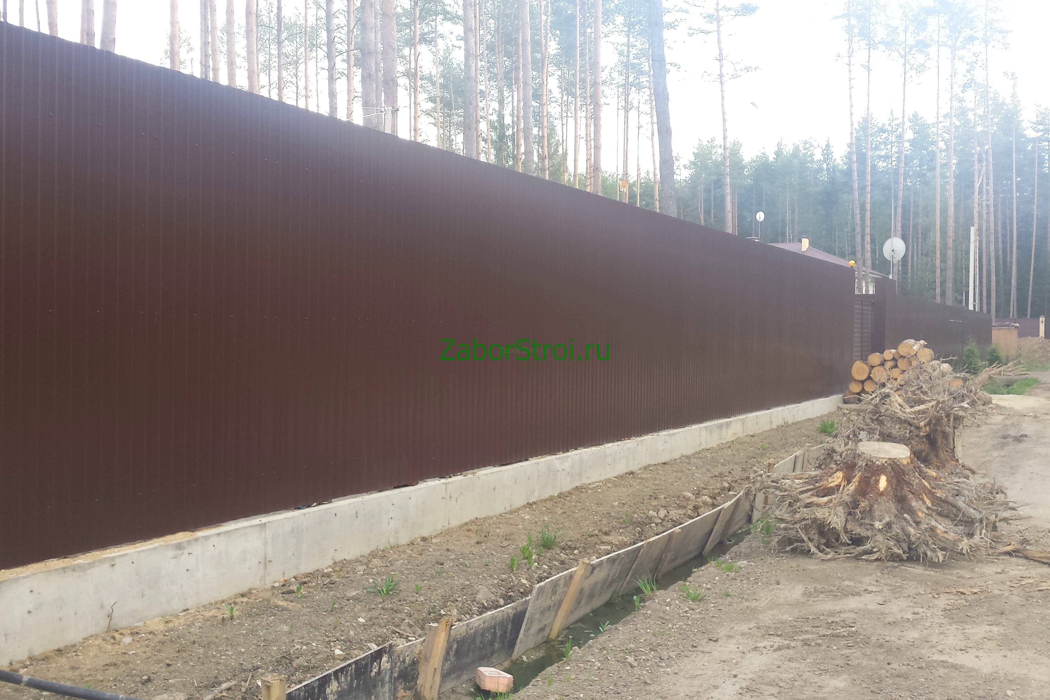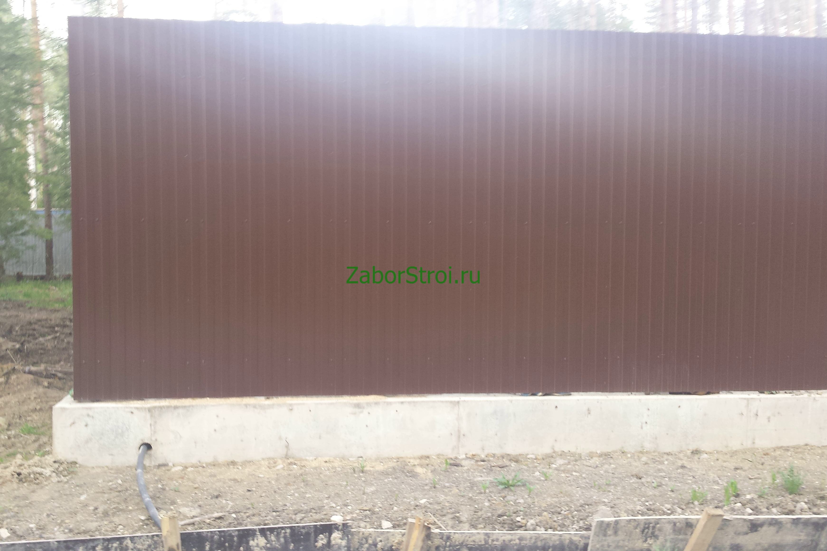 Откатные ворота из профнастила на винтовых сваях (цена на бетонном основании +20000р)