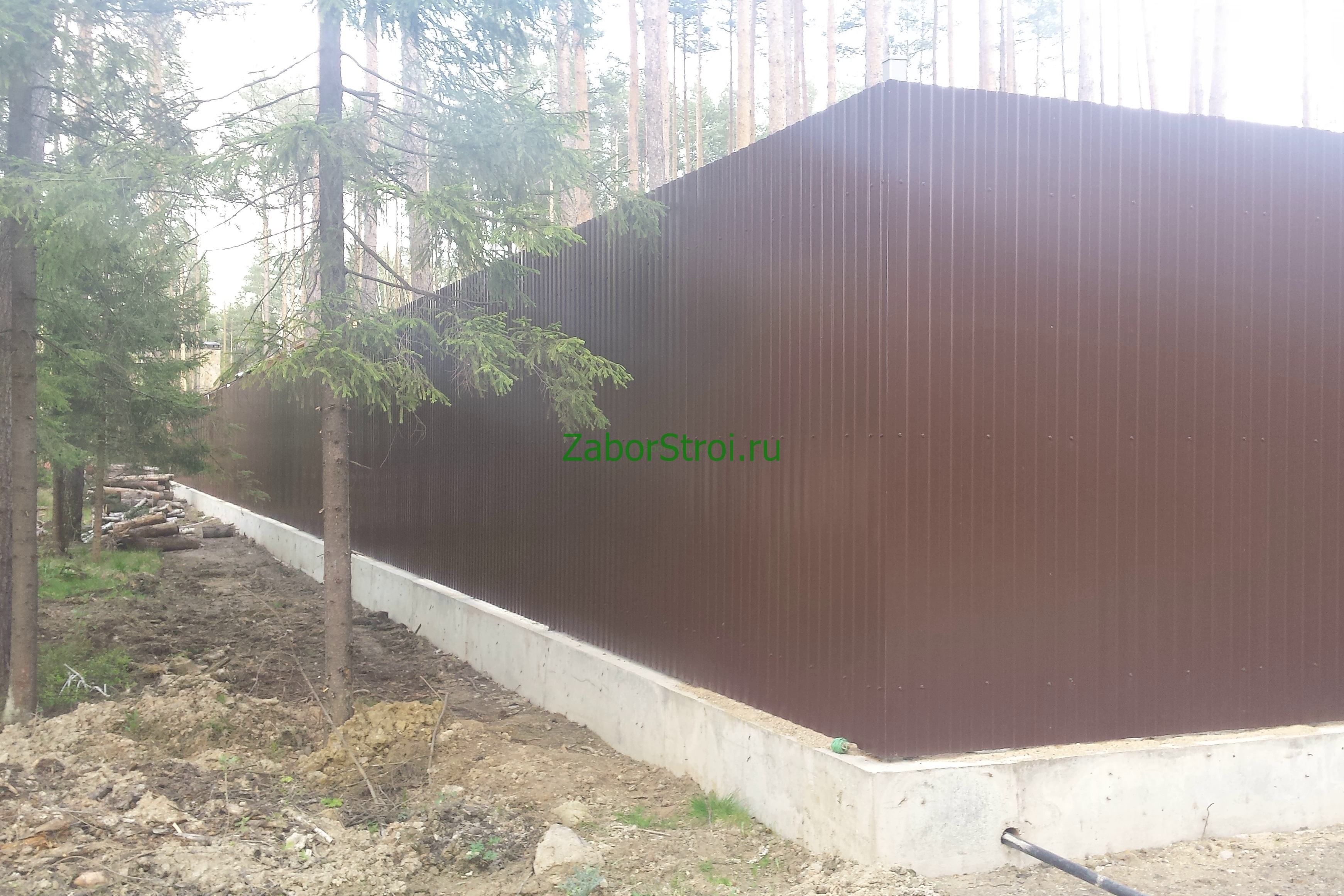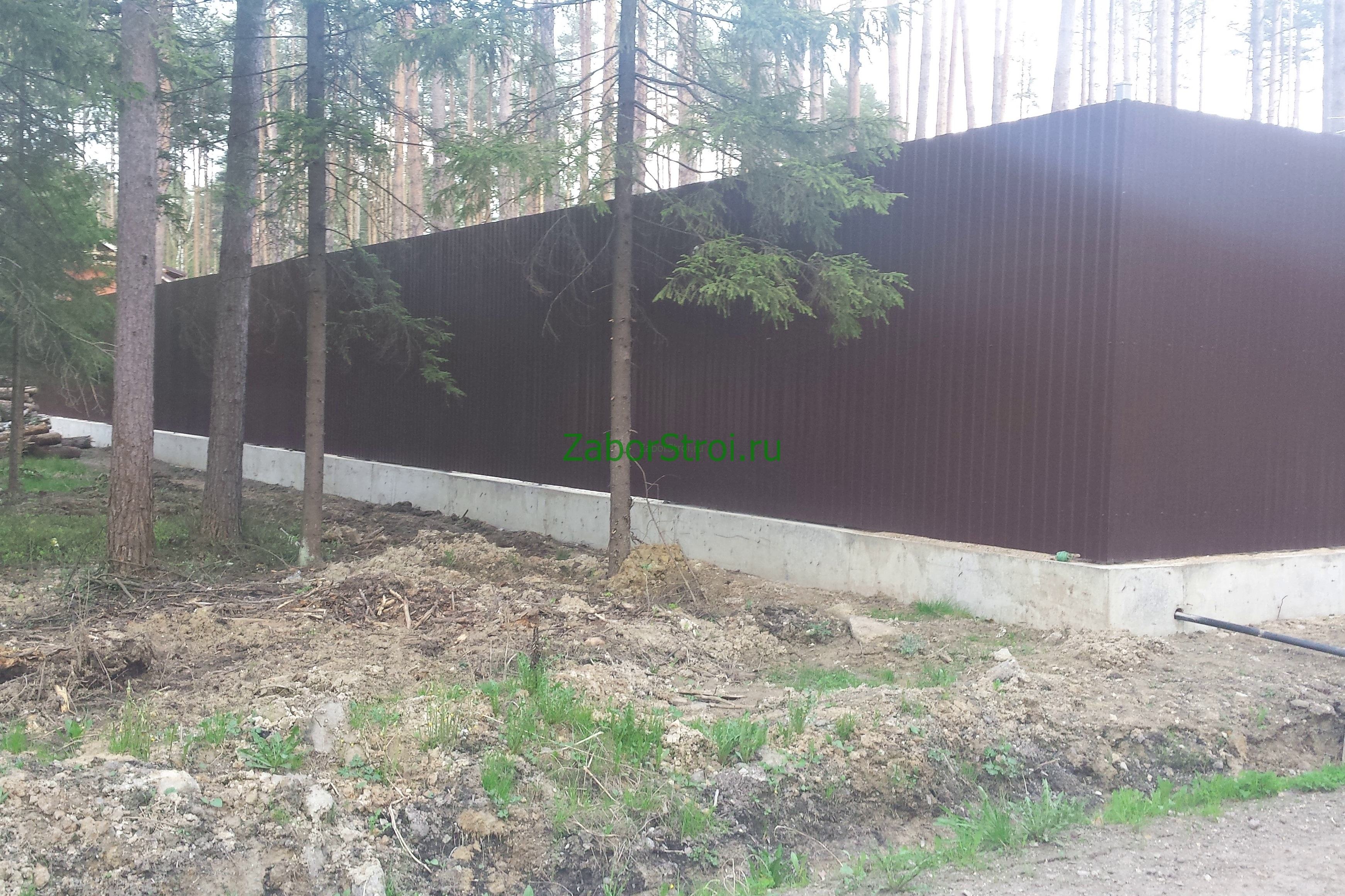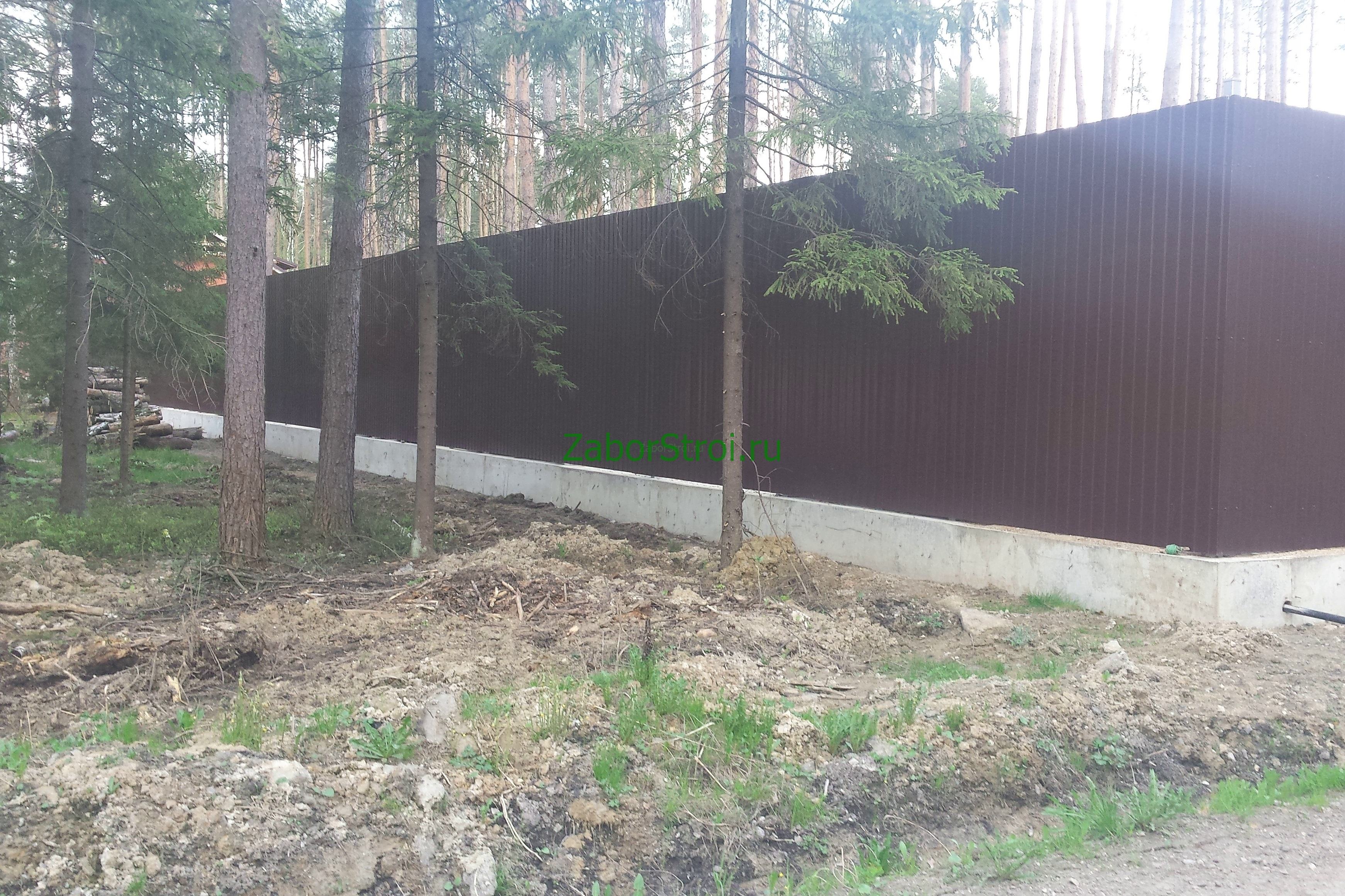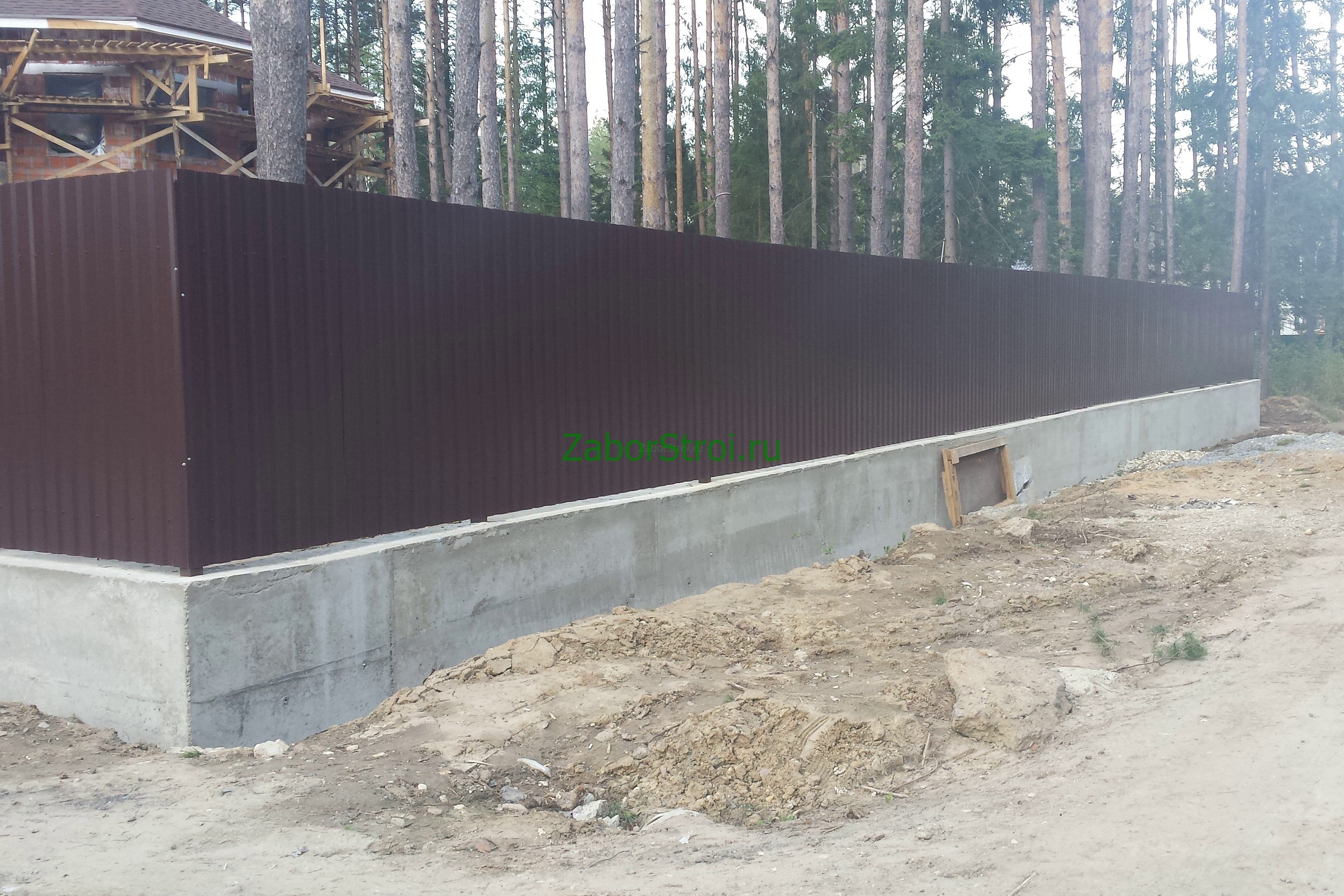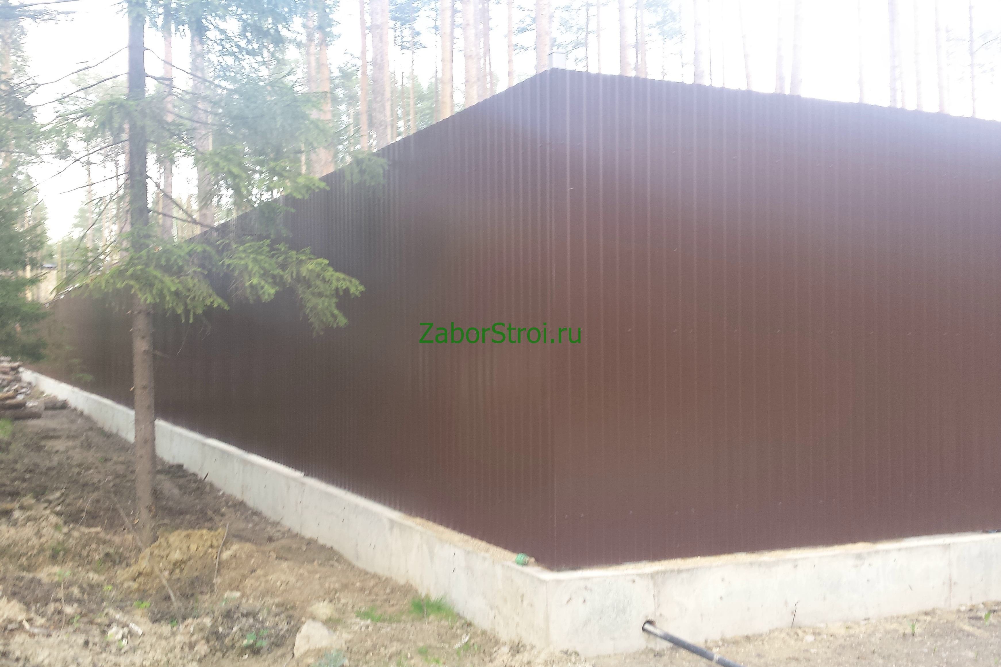 Откатные ворота из профнастила на винтовых сваях (цена на бетонном основании +20000р)