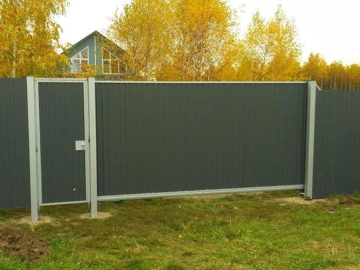 Откатные ворота из профнастила на винтовых сваях (цена на бетонном основании +20000р)