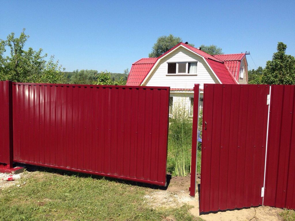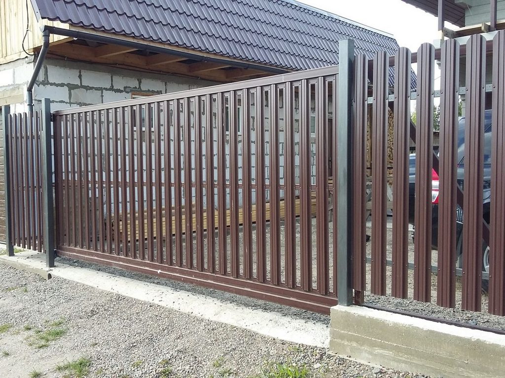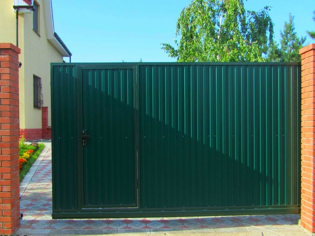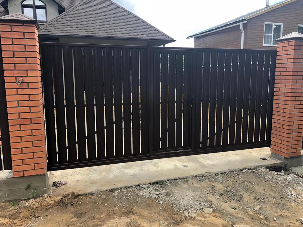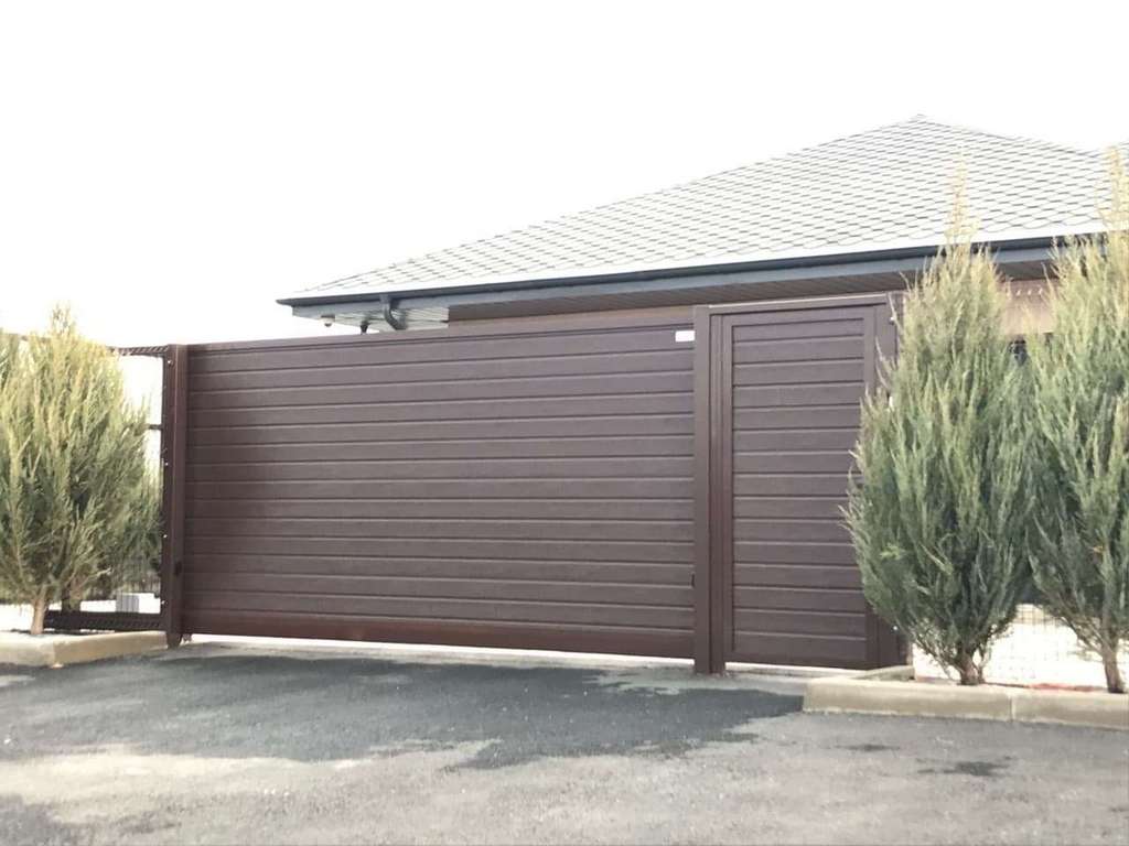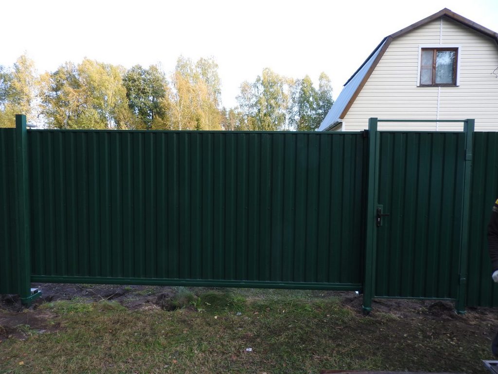 Откатные ворота из профнастила на винтовых сваях (цена на бетонном основании +20000р)
