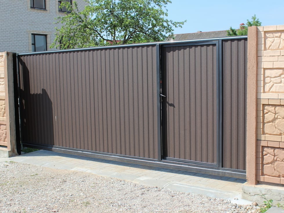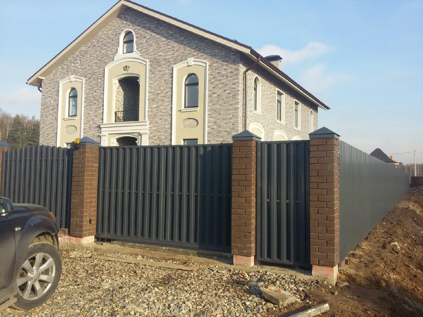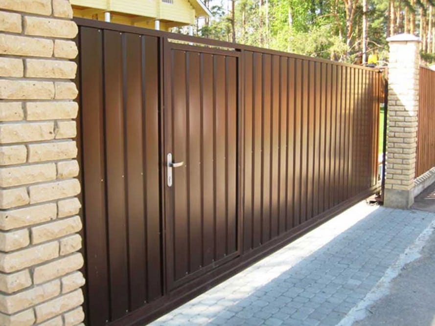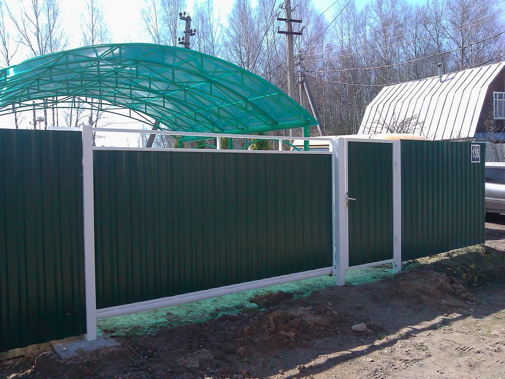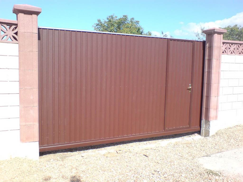 Откатные ворота из профнастила на винтовых сваях (цена на бетонном основании +20000р)