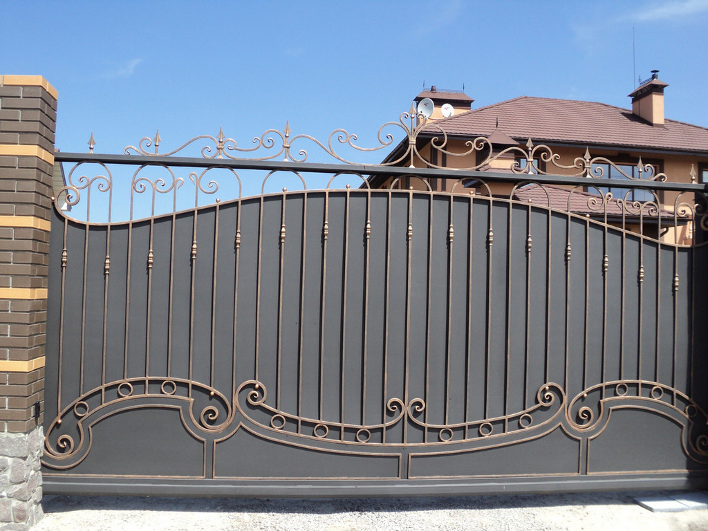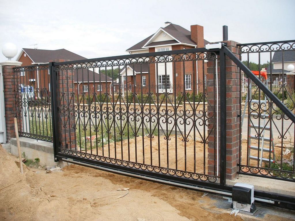 Откатные кованые ворота без автоматики